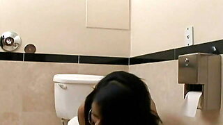 French ash-blonde does messy fuck-a-thon in a public toilet. Sucks, licks andprepares pussy for...
